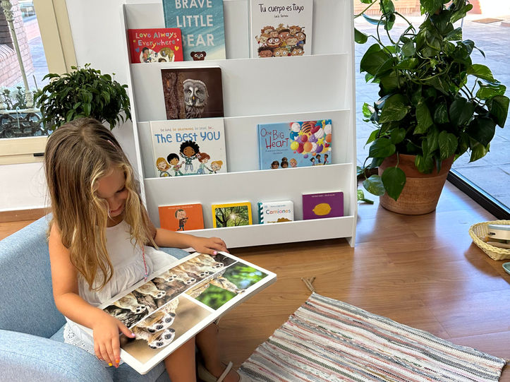 After playing in the playground, the afternoon routine begins. Some children choose to take a nap, while others prefer to continue with their work and activities in the Montessori classroom. In the afternoons, in addition to continuing with the individual work, the children take part in group activities focused on culture. For example, they might go out to the garden to explore agriculture, learn about Impressionist painters, or read aloud something they have written for others.