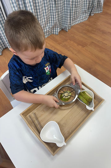 Practical Life: it goes beyond skills like dressing independently or preparing a snack. Over the 3-year program, children strengthen concentration, attention to detail, responsibility, and self-discipline, while learning to follow complex steps toward a goal. Most importantly, they develop a deep sense of capability that empowers them to overcome challenges and persevere in all areas of life.