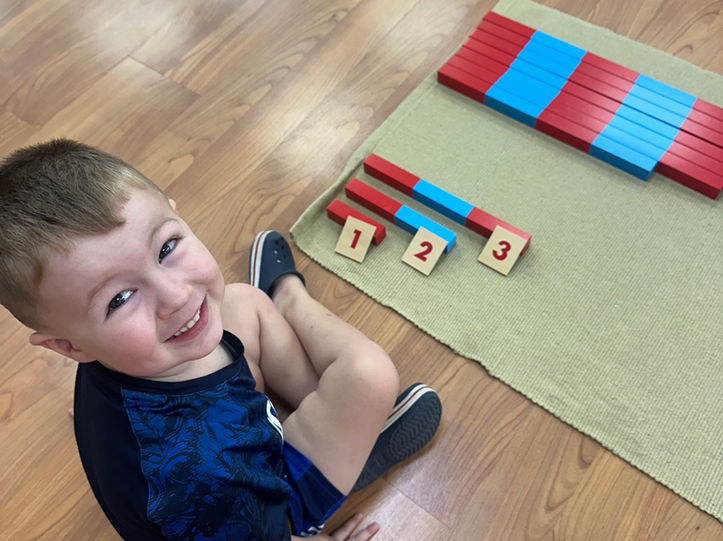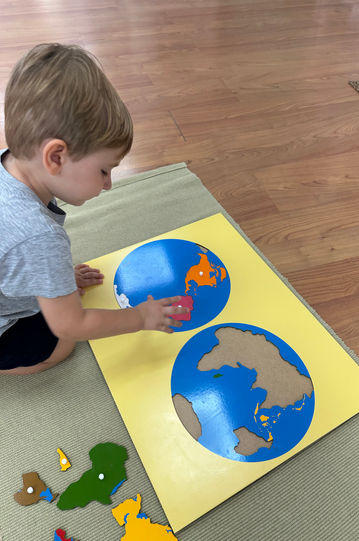 Sensorial: Children naturally love sensory exploration—through touch, sight, sound, taste, and smell. In a Montessori Children’s House, this curiosity is nurtured with a complete Sensorial curriculum. Children refine each sense through materials like color tablets, touch boards, and matching bells, gradually developing careful observation, logical reasoning, persistence, and comfort with mistakes. These experiences not only sharpen perception but also lay foundations for advanced concepts in math, geometry, and science. The curriculum includes botany, geography, history, art, and music, woven into all areas of the classroom. A child might match leaf shapes, garden, or learn plant vocabulary, while also exploring maps and terms like “archipelago” and “peninsula.” This approach nurtures curiosity, builds rich vocabulary, and lays the groundwork for abstract thinking and deeper studies in elementary, as children seek to understand the world and its patterns.