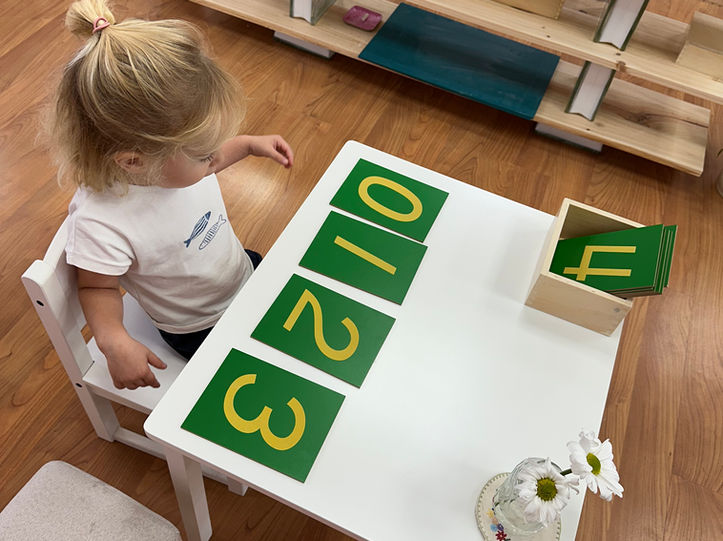 For about three hours, the children move freely through the environment. One child might be preparing a snack, another writing with the movable alphabet, another adding quantities on paper, one reading a story, another painting with watercolors, two others learning numbers, and perhaps another multiplying in their math notebook. Each child is engaged in their own meaningful task, with time to concentrate deeply. They move at their own pace, taking materials from the shelves and carefully putting them back once they finish. Meanwhile, the Montessori guide offers individual presentations, gently observing and guiding each child’s unique process.